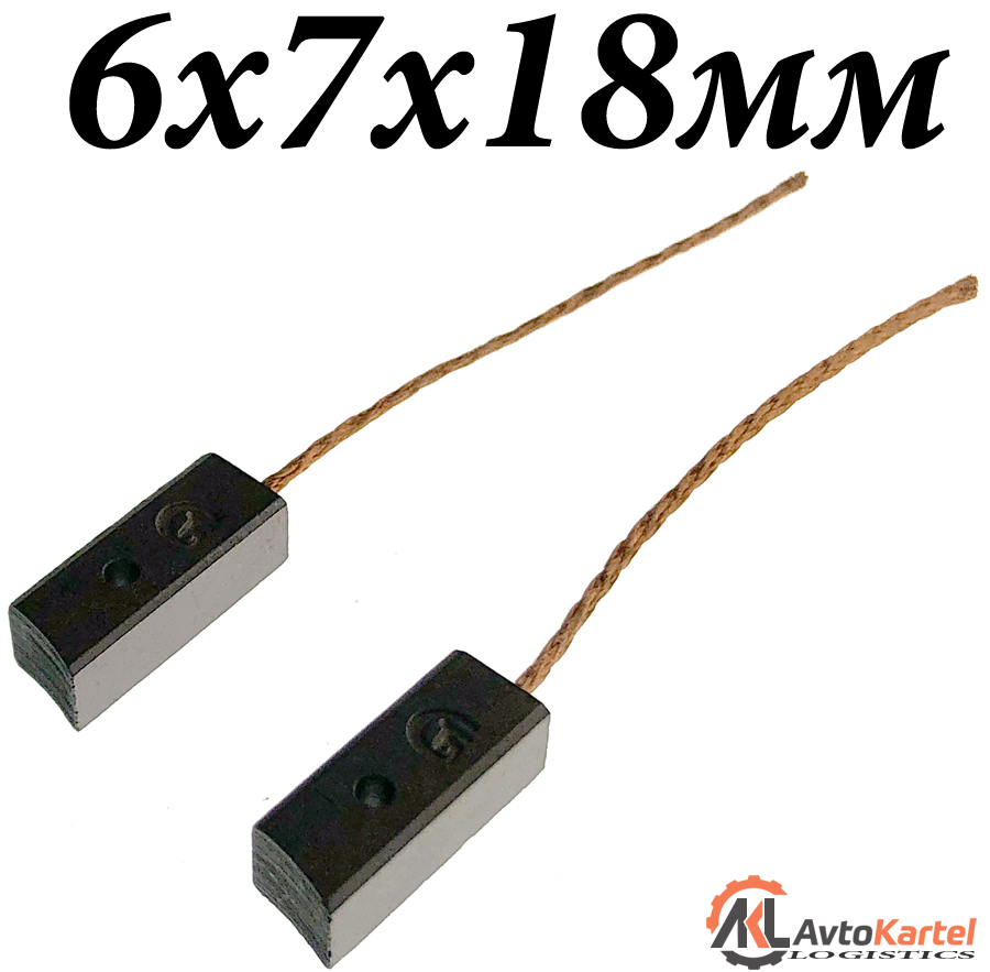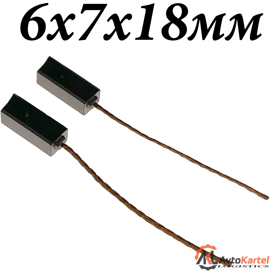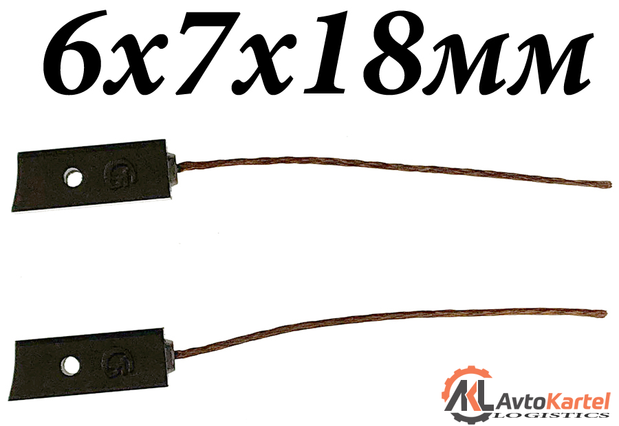 Комплект щеток генератора 2 штуки с отверстием для установки для генератора MITSUBISHI, ширина 6мм, длина 7мм, высота 18мм, вывод сверху, длина вывода не менее 50мм