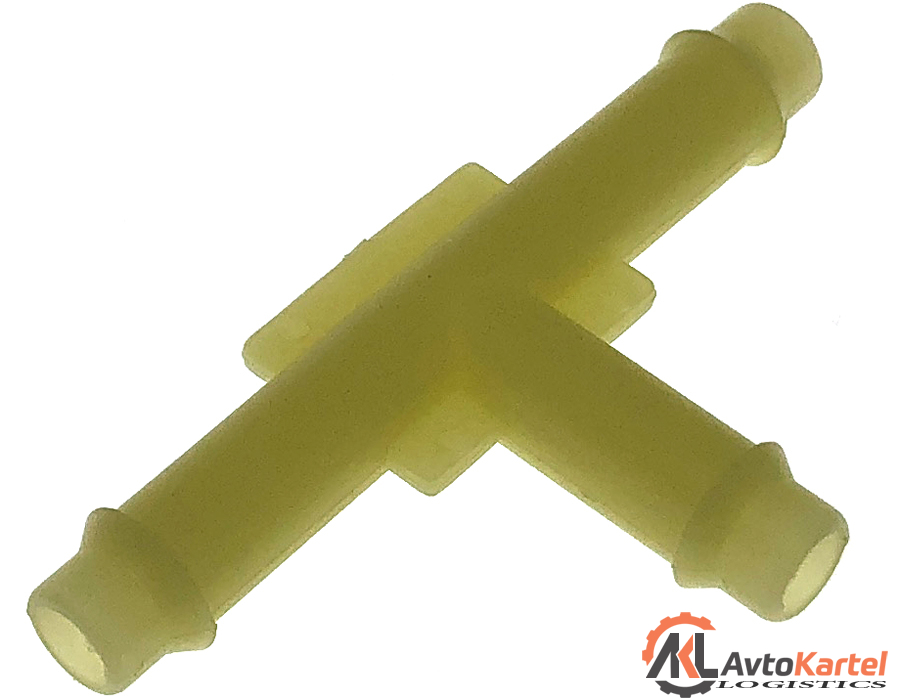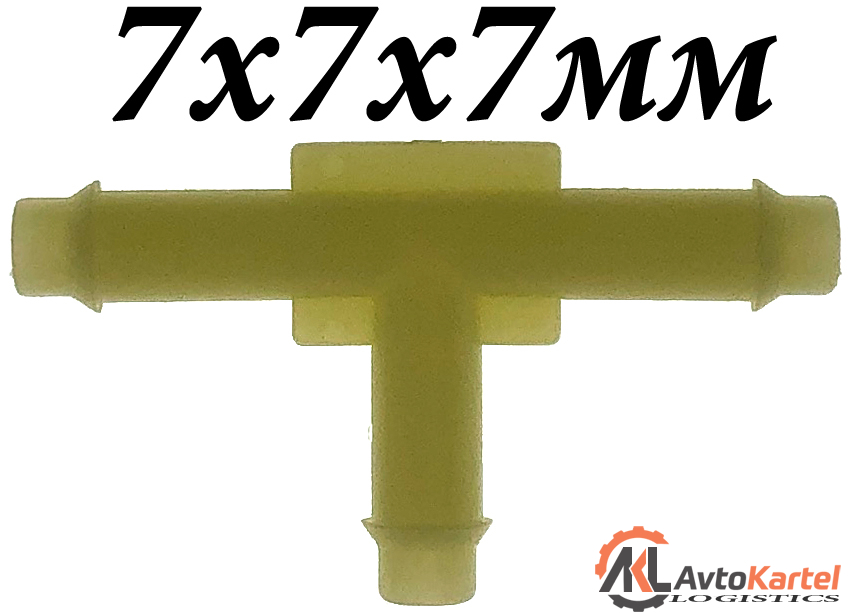 Тройник пластиковый 7х7х7мм Т-ОБРАЗНЫЙ применяемость: соединитель трубок системы омывателя стекла, наружный диаметр трубки 7мм, длина 52мм