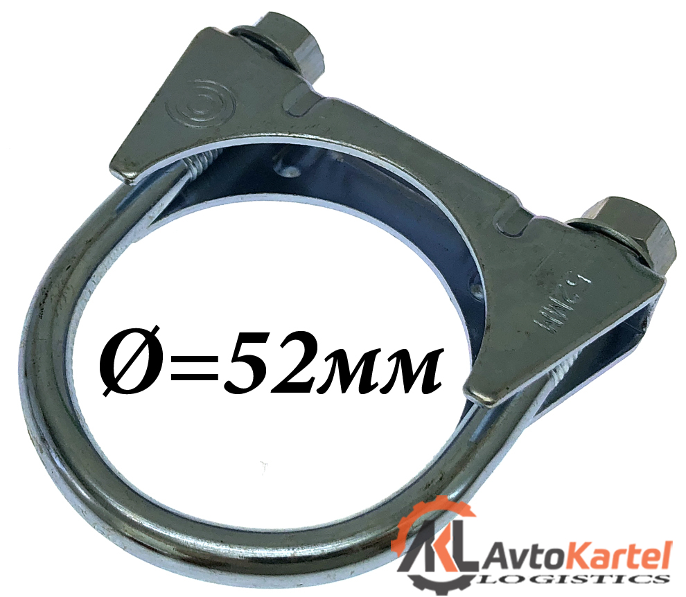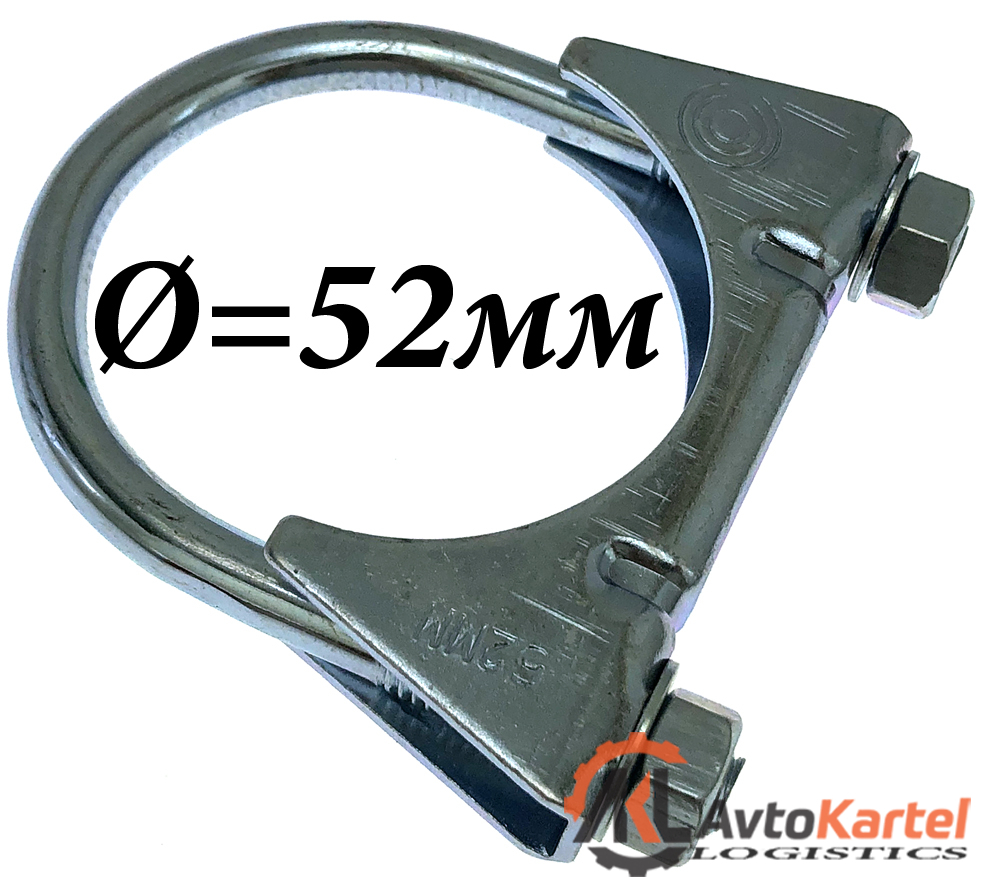 Хомут глушителя 52мм M8. Соединение нескольких частей глушителя осуществляется с помощью монтажных хомутов. Для правильного подбора необходимо знать диаметр трубы глушителя.