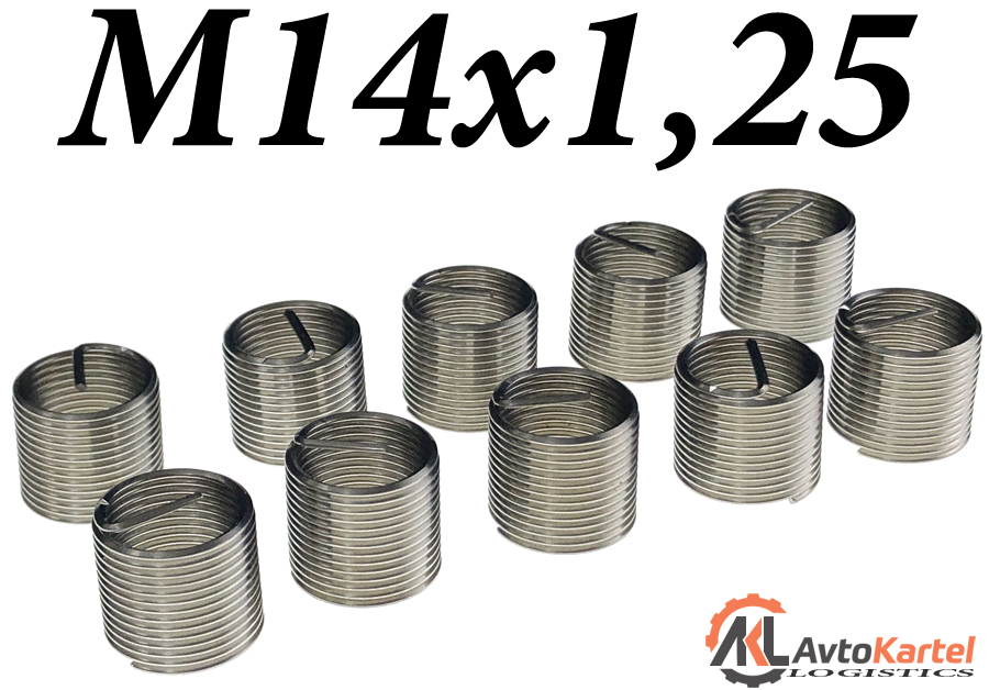 Вставки резьбовые для ремонта резьбы M14x1.25, высота вставки 15мм, количество в наборе - 10 вставок